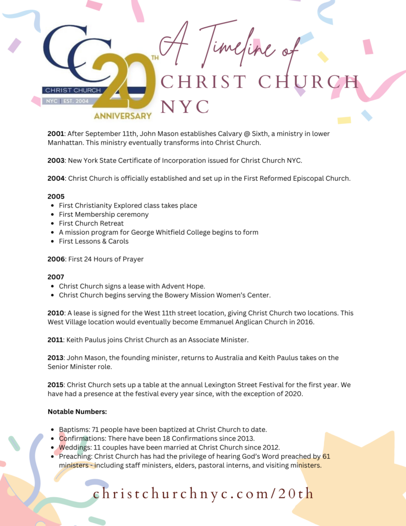 Celebration of Christ Church NYC’s 20 Years in Ministry